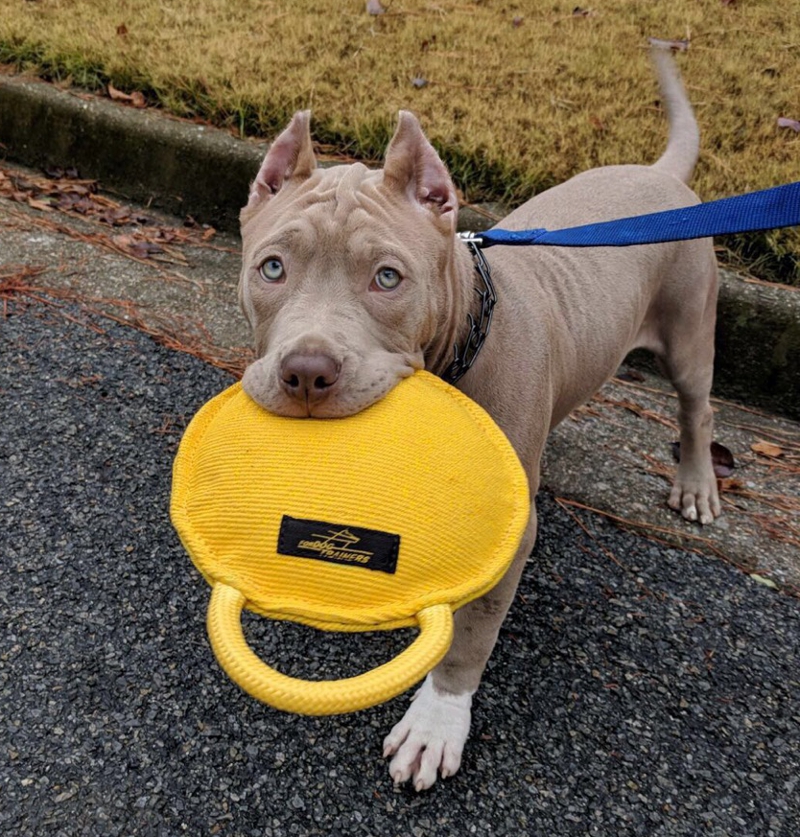 Ich mag dieses runde Beißspielzeug aus French Linen, sowie mein Arbeitshund Rottweiler. Wunderschönes Beisskissen für Vollmundtrainings, sowie ist sehr einfach im Gebrauch. Empfehlenswert.