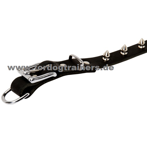 Dünnes Leder Halsband mit vernickelten Spikes aus Stahl