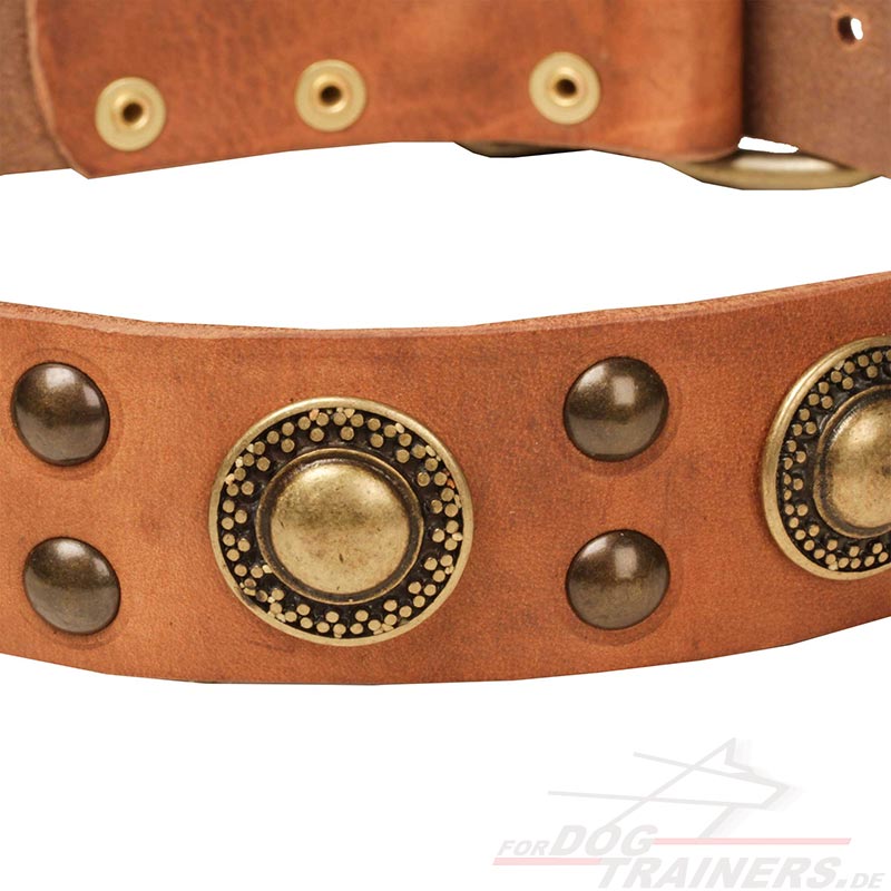 Lederhalsband mit Messing-Nieten-Dekorationen für Labrador